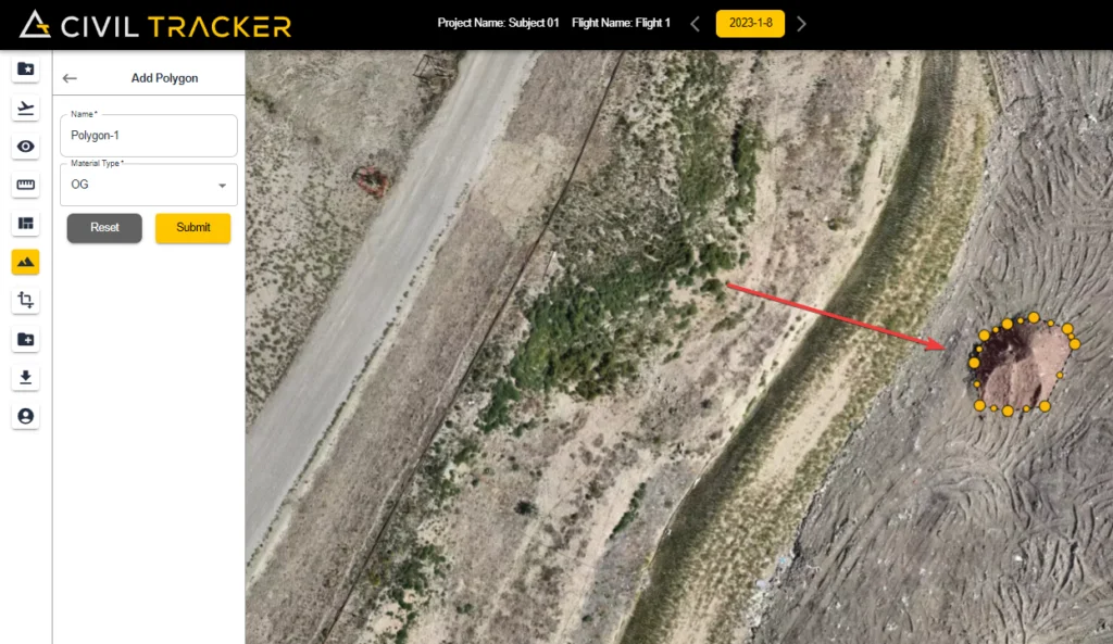 After that go to the “Smart Tracking” Tab and Click on your material, you will then be able to draw a polygon to encircle the area for your material